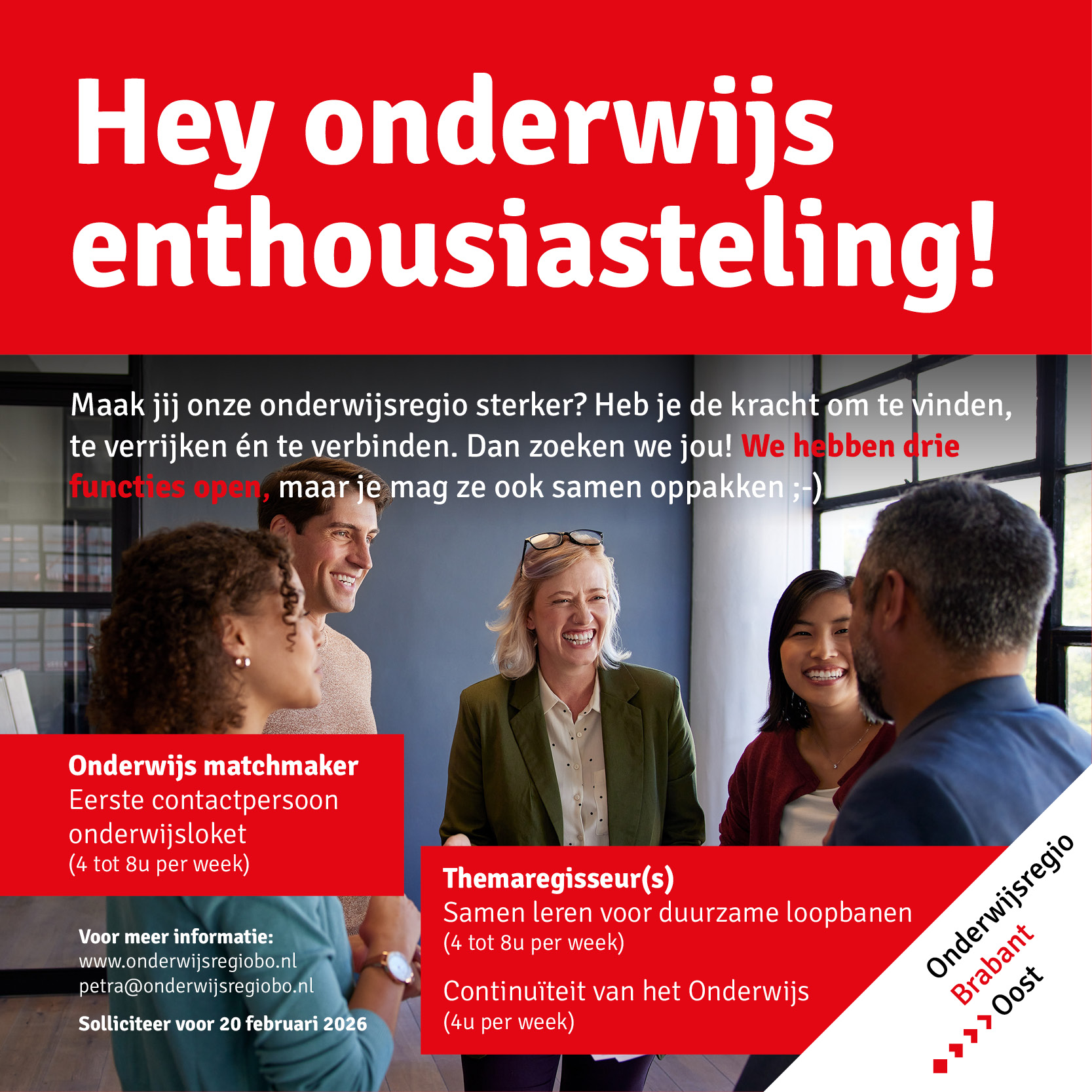 Onderwijsregio BrabantOost werkt samen met partners om de regionale onderwijsarbeidsmarkt te versterken, de instroom en het behoud van onderwijspersoneel te verbeteren en innovatieve, regiospecifieke oplossingen te ontwikkelen.
